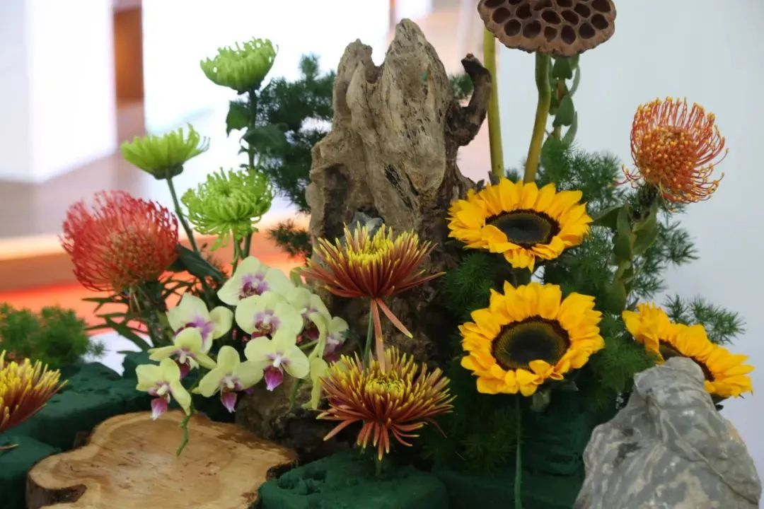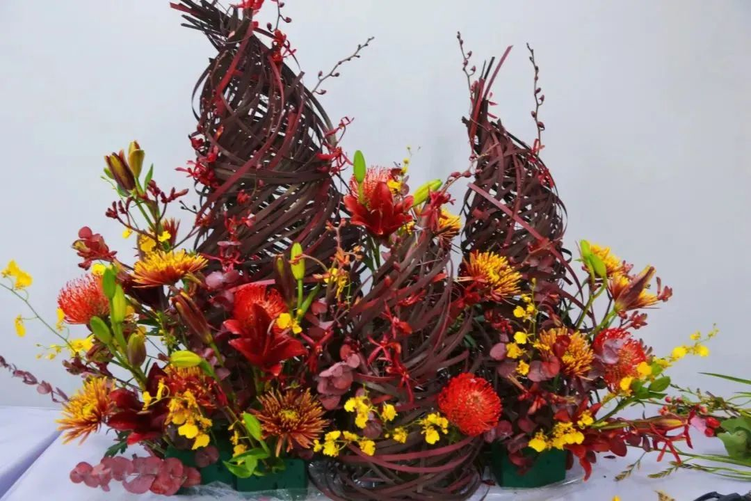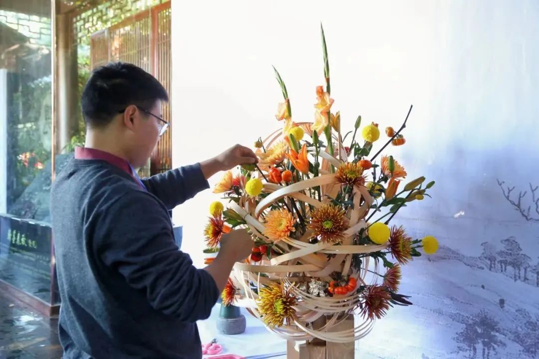 看他们将花朵、绿叶、枝干巧妙地组合在一起,