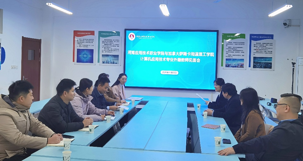 为进一步推进公司中外合作办学项目提质增效,2025年11月17日,公司与加拿大萨斯卡彻温理工公司中加合作办学计算机应用技术专业教学推进会在开封北院举行。中加合作项目主任BruceYu,加拿大外教团队Xin Wang (Alex)和Mayra Samaniego老师,太阳集团tyc151cc班子成员、教师代表以及科研外事处工作人员等出席会议。会议由副经理夏丽珍主持。