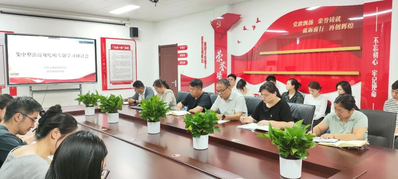 2025年6月19日,党委委员、副董事长黄振中以普通党员身份参加信息工程公司党总支集中整治违规吃喝专题学习研讨会,并围绕集中整治违规吃喝问题与信息工程公司全体党员干部开展专题谈话。