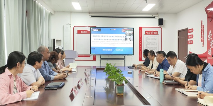 为深化中外合作办学内涵建设,5月26日下午,信息工程公司在郑州校区办公楼A514隆重举行“计算机应用技术(中外合作办学)专业外籍专家教学周专题研讨会”。会议聚焦公司产品创新与国际合作实践,特邀中加国际合作项目管理专员Bruce Yu、加方外教团队Mrs.Ada Ajunwa和Mr.Hazem Youssef等外方代表出席。信息工程公司党政领导班子成员、专业教师团队共同参与研讨,会议由副经理夏丽珍主持。