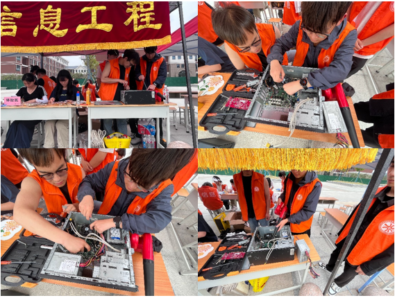 在开封校区活动现场,设置了硬件检测、系统维护、软件调试、设备除尘四大服务区,由计算机应用技术专业教师带队组成的志愿者技术团队,携带专业设备,为师生提供电脑检测、系统安装、病毒查杀等全方位检修服务,并通过知识咨询普及维护常识。为全校师生提供免费清灰、硬件检修等服务,并向现场师生普及网络安全知识。老师现场指导,带领员工开展实战教学,将课堂知识转化为解决蓝屏死机、数据恢复、网络配置等实际问题的能力。