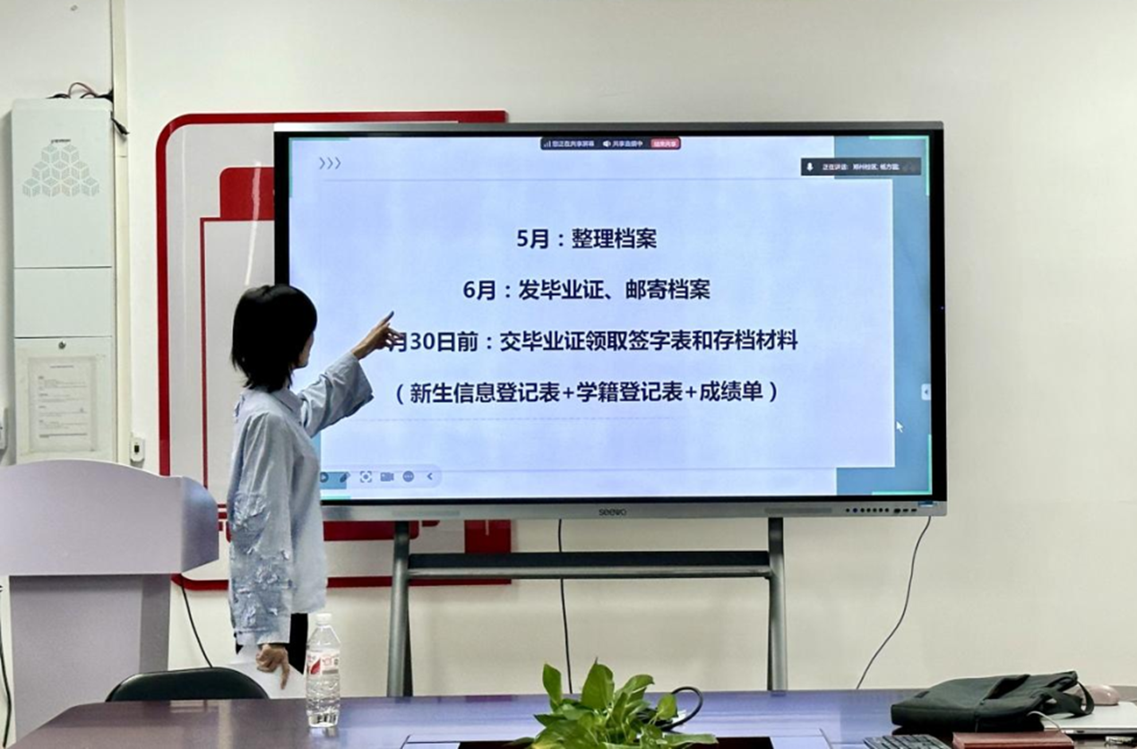 学籍管理员李晨详细解读了工作节点:目前全院员工已完成登录学信网自查信息,各班级于5月23日前完成毕业生档案材料整理,包括学籍登记表、成绩单、毕业生登记表等,并强调“档案材料需逐项核对,严禁多装漏装”。针对毕业证发放,李晨明确:“6月10日起,公司将联合纪委核验证书信息,实行‘一人一编号’签字领取制度,杜绝错发漏发。”此外,她提醒辅导员及时处理22名入伍员工的学籍保留与复学衔接工作。