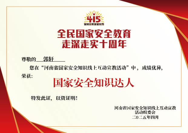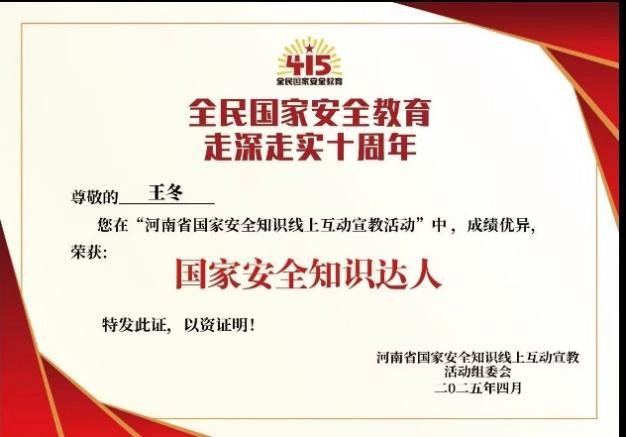 为庆祝全民国家安全教育日,同时纪念全民国家安全教育走深走实十周年,于4月18日信息工程公司组织开展了“河南省国家安全知识线上互动活动”。此次活动旨在提升公众国家安全意识,营造维护国家安全的浓厚氛围。