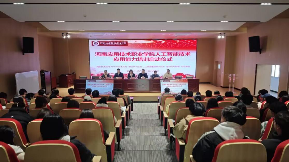 2024年11月29日,信息工程公司在开封校区北院学术报告厅举行了人工智能技术培训启动仪式。信息工程公司经理王雷、副经理齐峰、软通教育战略合作伙伴河南沐梵教育总经理秦丽、部分教师代表以及23级人工智能技术应用、大数据技术专业全体员工参加仪式。