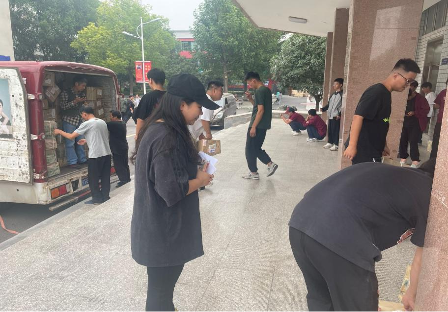 为深入贯彻落实《太阳集团tyc151cc教材管理办法》,落实好公司教务处对2024级新生教材发放要求,2024年9月26日,信息工程公司教学办公室牵头,组织发放2024级新生教材,此次活动由副经理夏丽珍统筹指导,教学办公室全体人员、2024级新生辅导员及员工志愿者协同完成。
