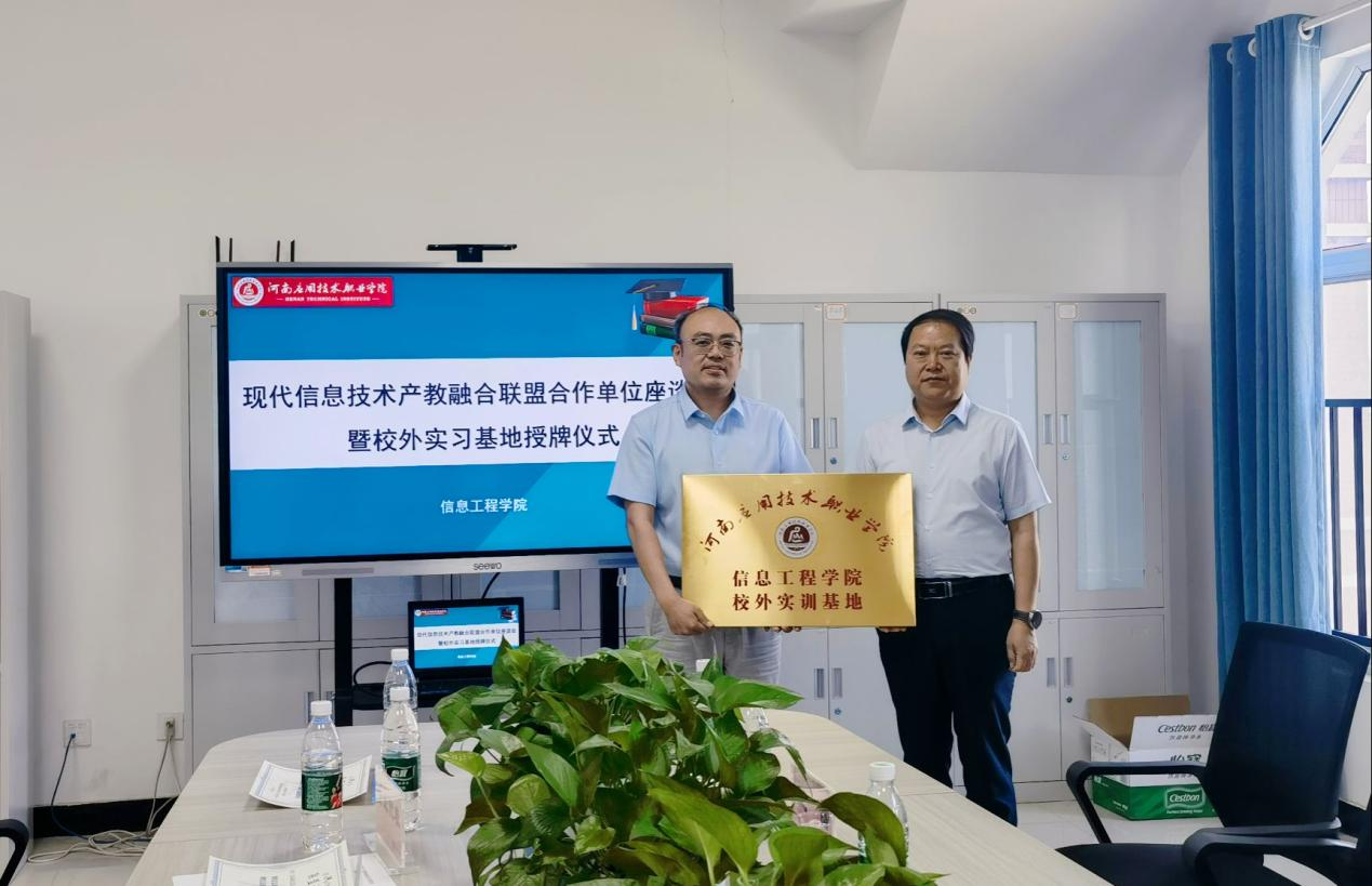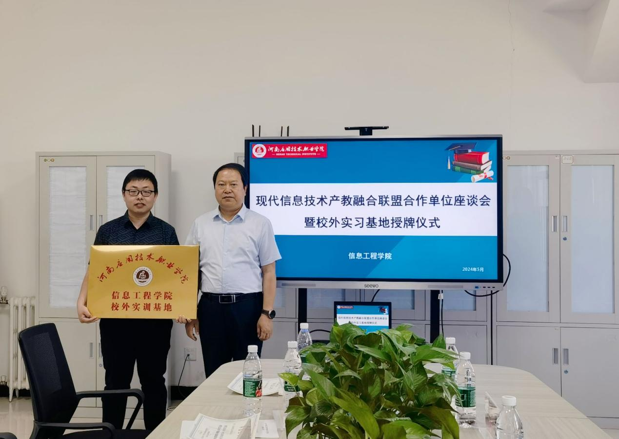 为深化产教融合,努力培养符合产业需要的高素质应用型、复合型、创新型人才,促进毕业生高质量就业,打造实践育人广阔平台,充分发挥基地在教学过程中的重要作用,5月17日,信息工程公司在开封校区北院教学楼C314为“北京标软信息技术有限公司”、“百智云(河南)人工智能科技有限责任公司”、“郑州慧牛网络科技有限公司”三家校外实训基地授牌,同时为“向心力信息技术股份有限公司”、“福建中锐网络股份有限公司”、“河南铸远教育科技有限公司”等10家现代信息技术产教融合发展联盟单位颁发了联盟证书。