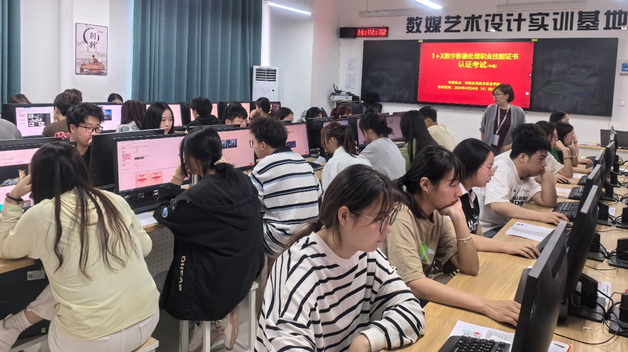 考场设置在开封校区的数媒艺术设计实训室和现代信息技术实训中心,为确保考试的顺利开展,机房管理员提前一天调试设备、测试网络。考试当天,监考老师认真查验了员工的身份证和准考证,考生无一缺考。