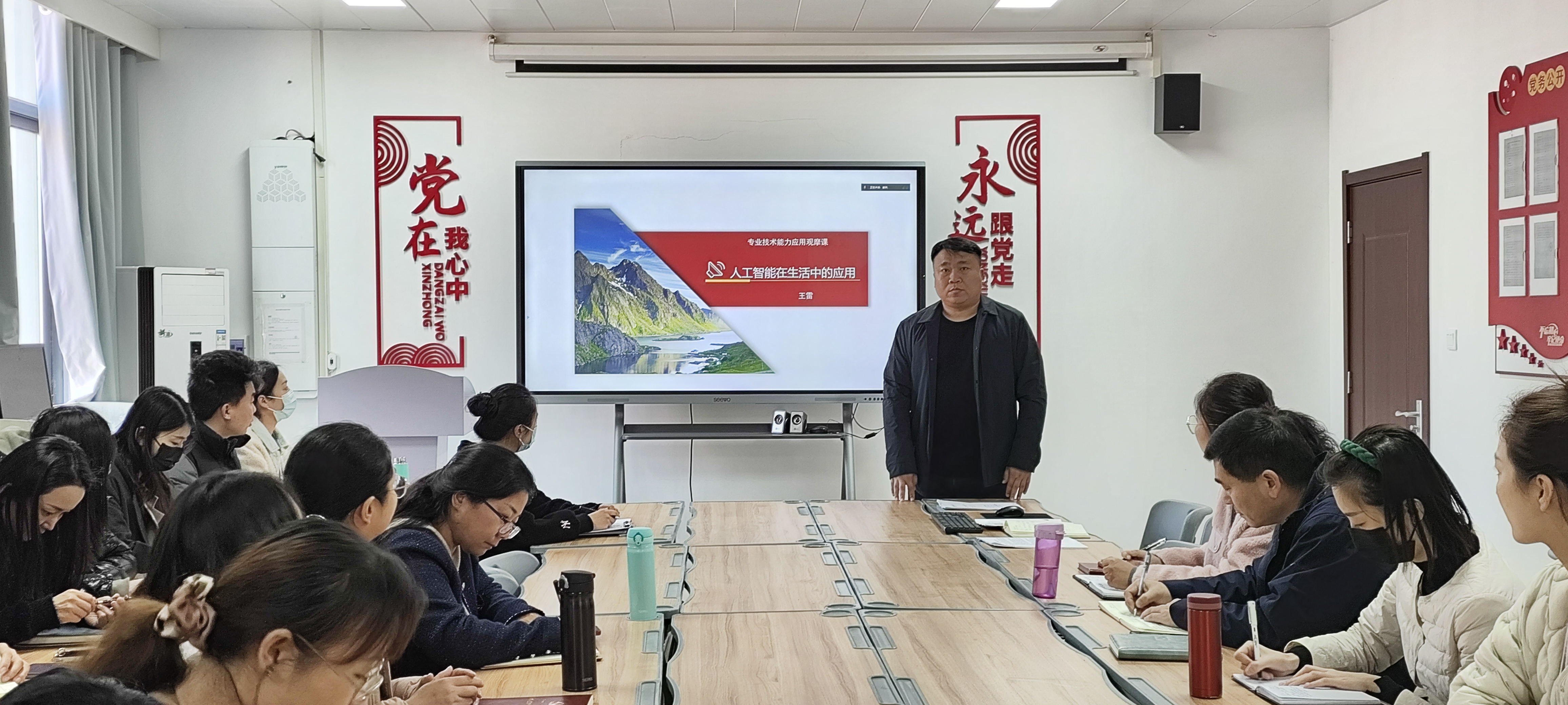 为了提高公司教学质量,促进教师之间的交流学习,更好地发挥优秀教师的示范引领作用,信息工程公司举行了公开示范观摩课活动。11月14日下午,在办公楼A514,王雷老师开展人工智能科普教育公开示范课,公司全体教师、郑州和开封校区部分员工代表参加了观摩听课。