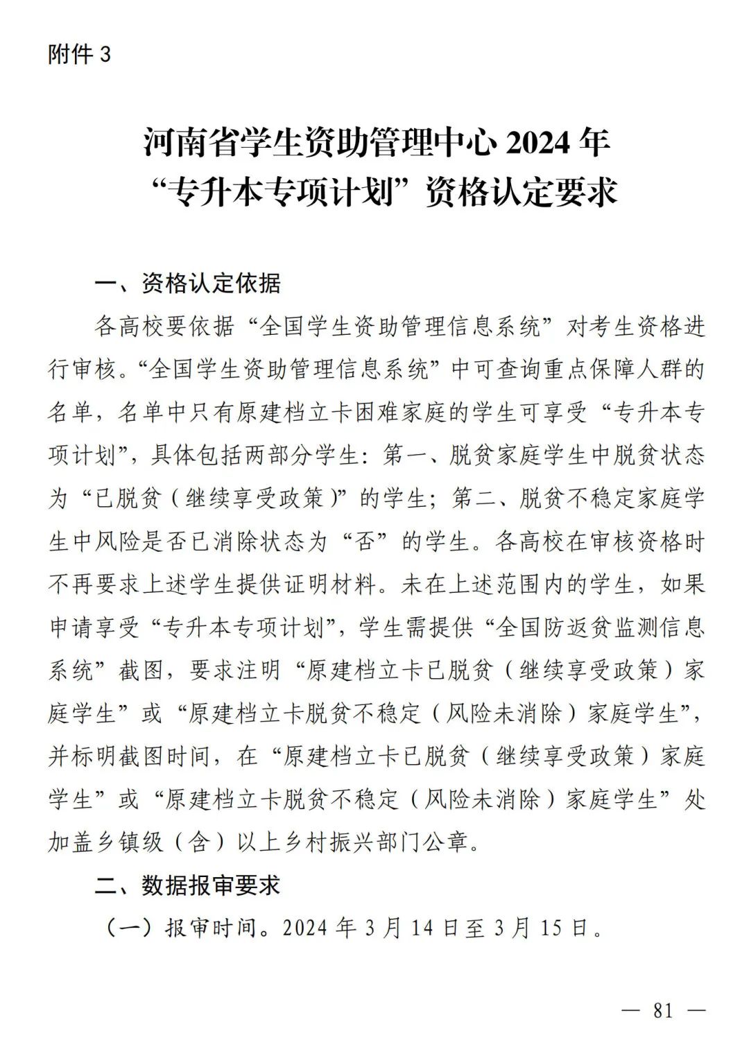 3.河南省员工资助管理中心2024年“专升本专项计划”资格认定要求
