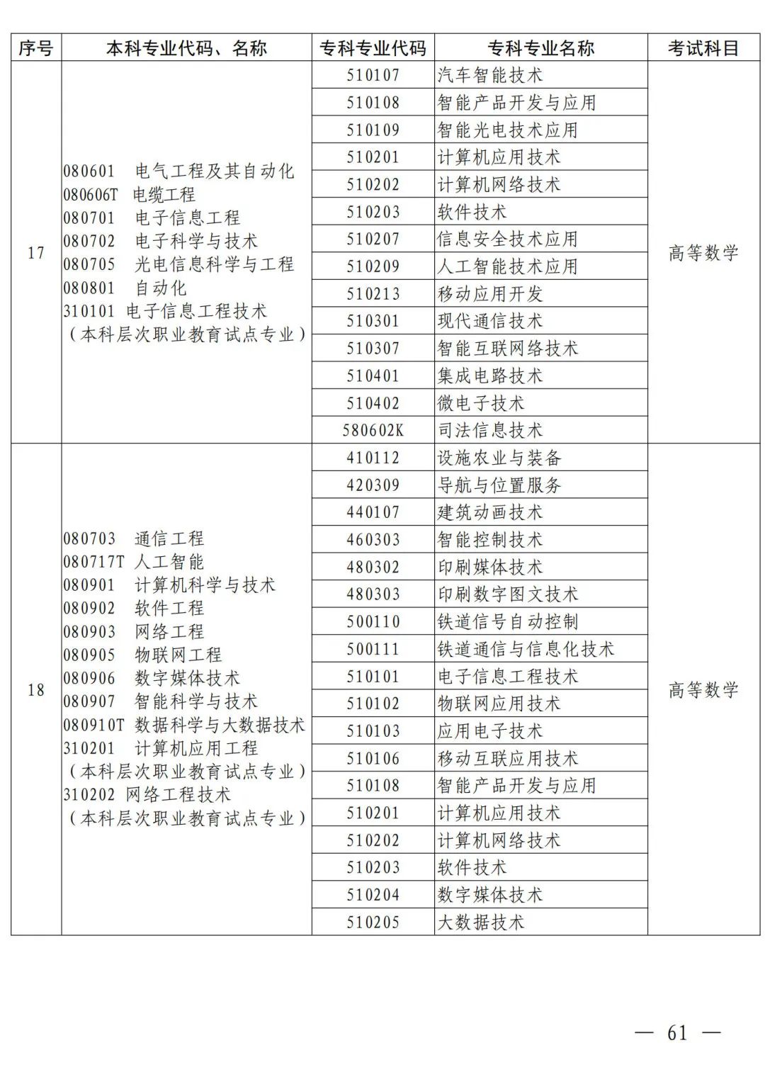 2.考试内容。考生须参加全省统一组织的专升本考试。考试科目为英语(英语专业考生为《专业英语》,非英语专业考生为《公共英语》)、专业综合(体、音、舞、美专业为专业加试)两科,每科满分为150分。专业综合考试以本科招生专业的专业课或专业基础课分类,按照《本、专科专业对照及考试课程一览表》规定的考试课程进行命题。