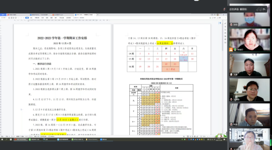 随后,付媛冰主任就监考工作、期末教学检查工作、专家听评课工作、教学常规资料收集工作等工作任务进行任务分解,制定了详细的计划和时间节点,提醒专兼职教师严格规范执行考务工作。