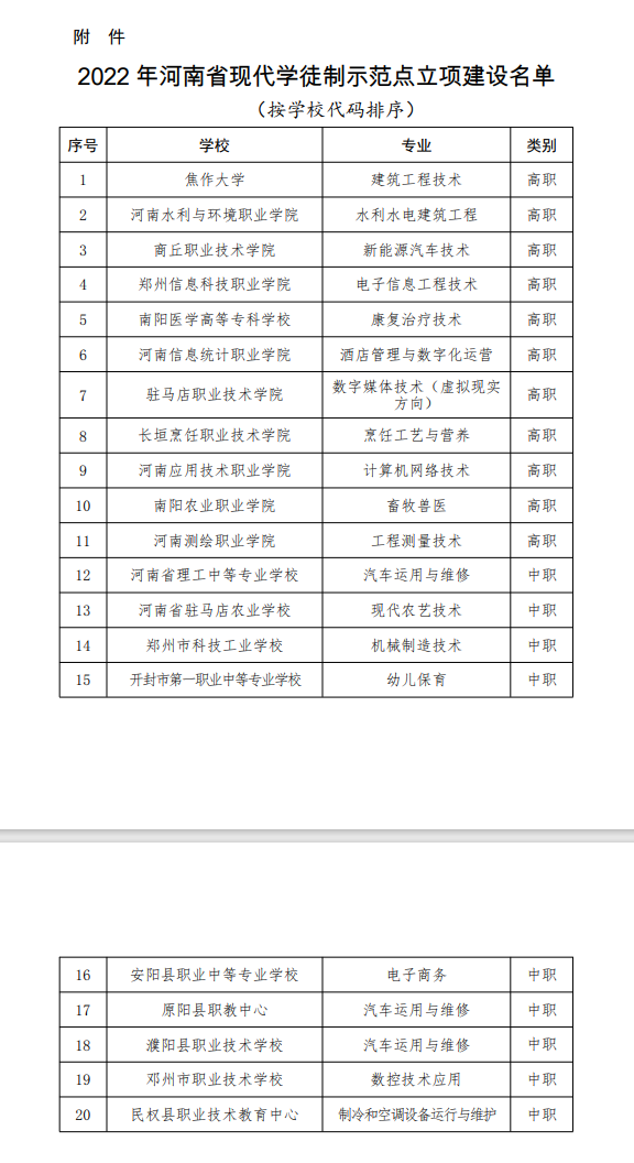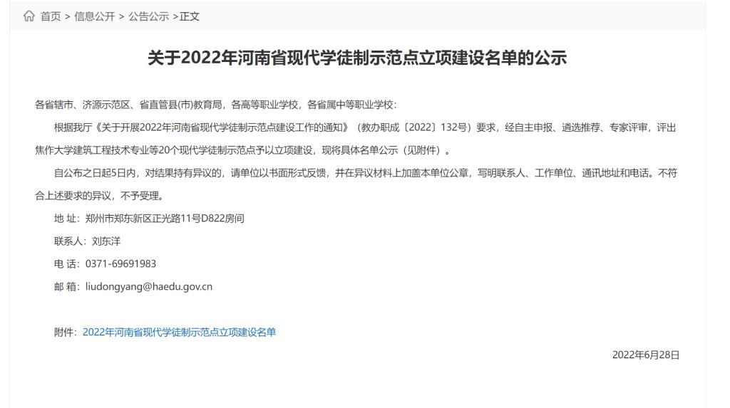 6月28日,河南省教育厅发布《关于2022年河南省现代学徒制示范点立项建设名单公示》,信息工程公司计算机网络技术专业被认定为河南省第二批现代学徒制示范点拟立项建设项目。