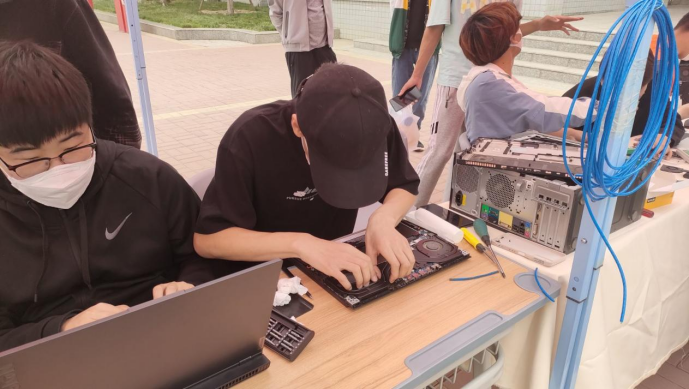 活动现场,咨询组的成员们对前来咨询的同学们提出的问题,一边细心的做好记录,一边进行设备检查,并对他们提出的疑难问题做出了相对专业的解释;维修组的技术员们也是在详细了解电脑情况、再三确认后展开维修工作,对前来维修的电脑设备极其负责。大家分工合作,及时有效地为同学们解决了电脑问题,受到了广大同学的赞扬。