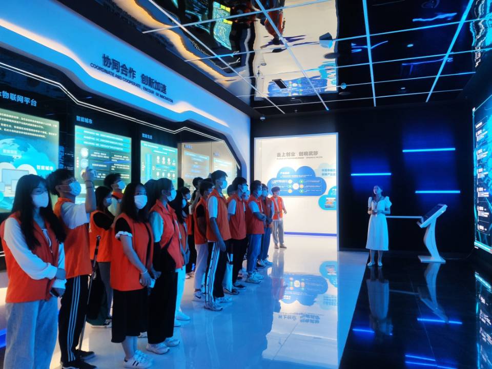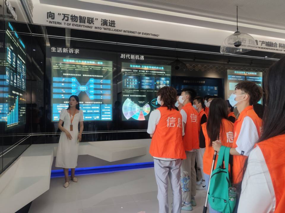 随后,公司指导教师带领同学们实地考察了入驻企业的办公环境、运作模式、发展情况及社会效益等,就建立实习基地相关事宜,基地的工作人员向大家进行了详细的介绍,从展示的视频中,同学们对基地有了初步的了解;随后,通过对智能家居、智能制造等应用场景的参观学习,使同学们对计算机、大数据及物联网的应用有了全面的认识和了解。