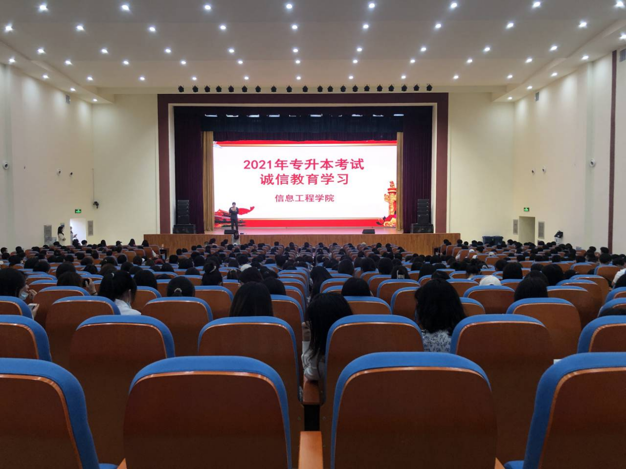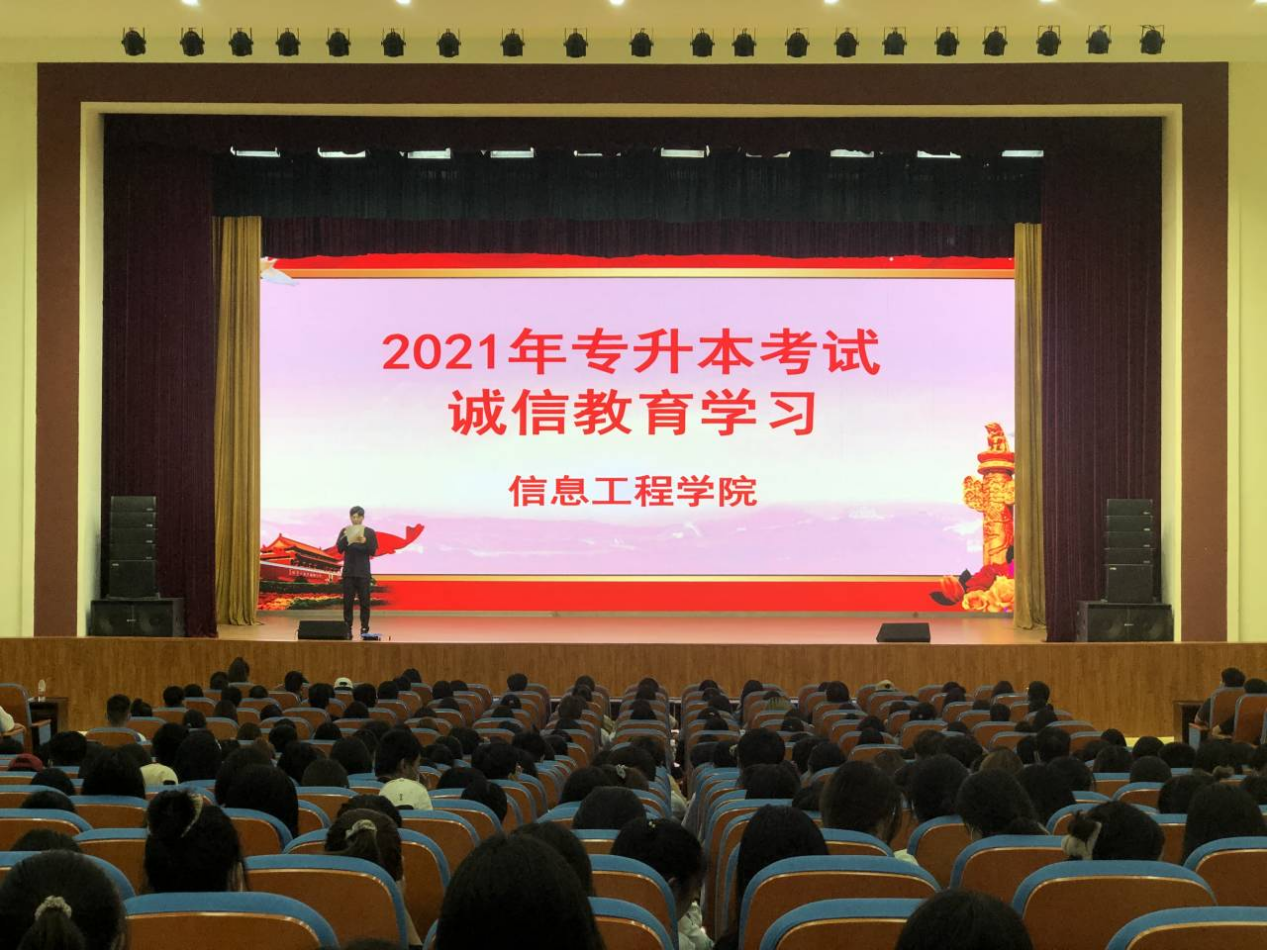 会议首先向同学们传达了省、市招办以及公司专升本考试相关文件精神;带领考生学习《河南省2021年普通高校招生考生诚信承诺书》并提醒同学们仔细阅读相关内容,并严格遵守考纪考规,自觉遵守考试秩序。