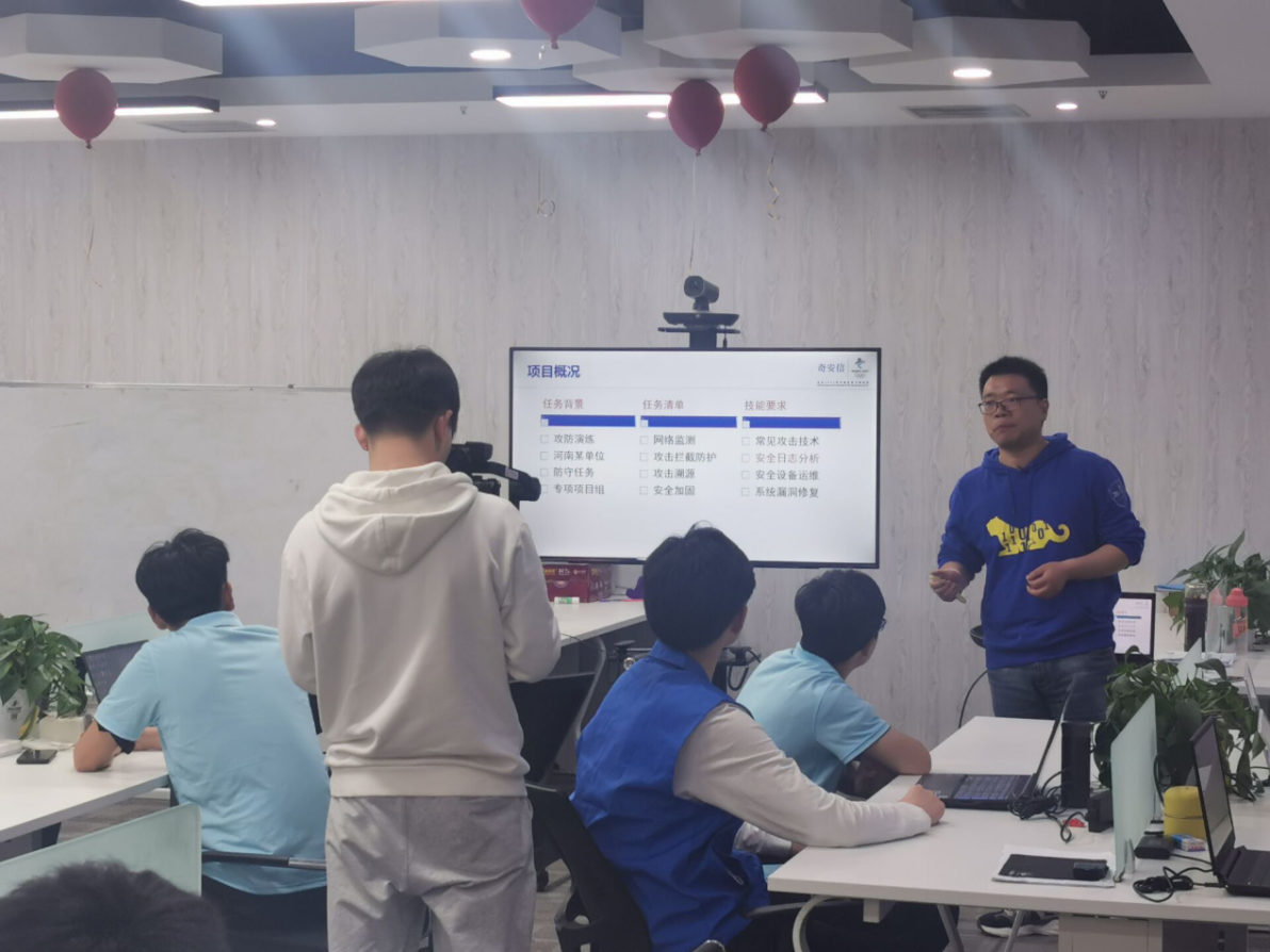 启动仪式后,师生一行到郑州CBD奇安信集团进行入职环节。本次跟岗实习启动仪式标志着公司与奇安信科技集团及网络安全行业在产教融合、合作办学等方面迈出了更加坚实的一步,对公司进一步高质量服务中原高新产业经济,大力发展职业教育,建立校企命运共同体有着积极作用。