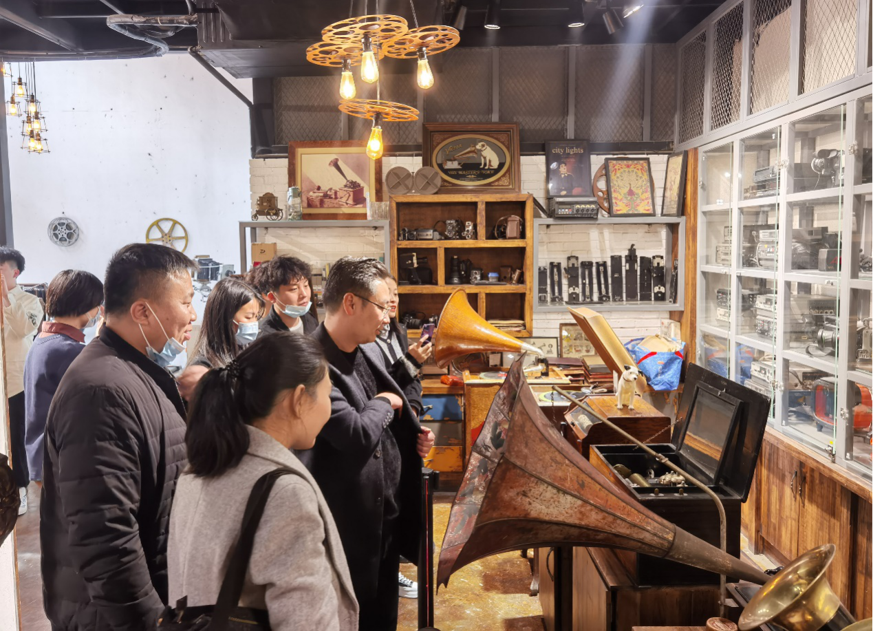 考察组随后实地参观了辉睿影视文创基地数字摄影棚、火文化展馆、历史留影设备馆、留声机文化馆等几个代表性场地,深入市内拍摄现场,感受高端摄录影音设备带来的震撼,体验影视音发展历程。