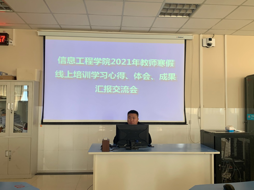 为提高公司教师公司产品能力,助力“双高校”相关任务建设,根据公司安排, 信息工程公司全体教师于2021年寒假期间参加学习了以“寒假教师线上培训”为主题的培训学习,为巩固寒假全体教师线上培训成果,进一步推动公司双高建设、三教改革、课程思政等工作持续深入进行,信息工程公司于2021年3月4日下午在网络实训室E416开展了教师寒假线上培训学习心得分享交流会。