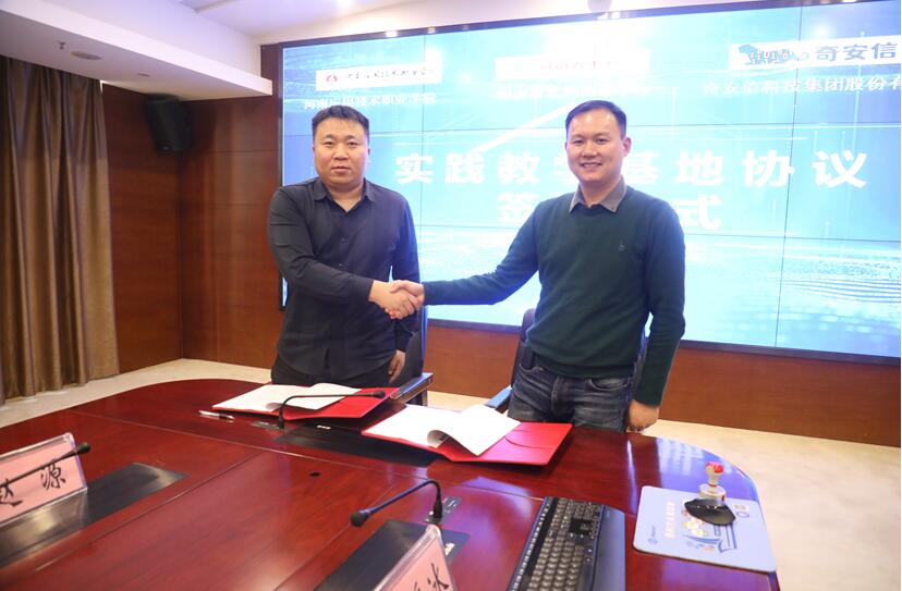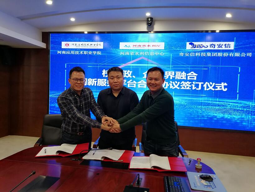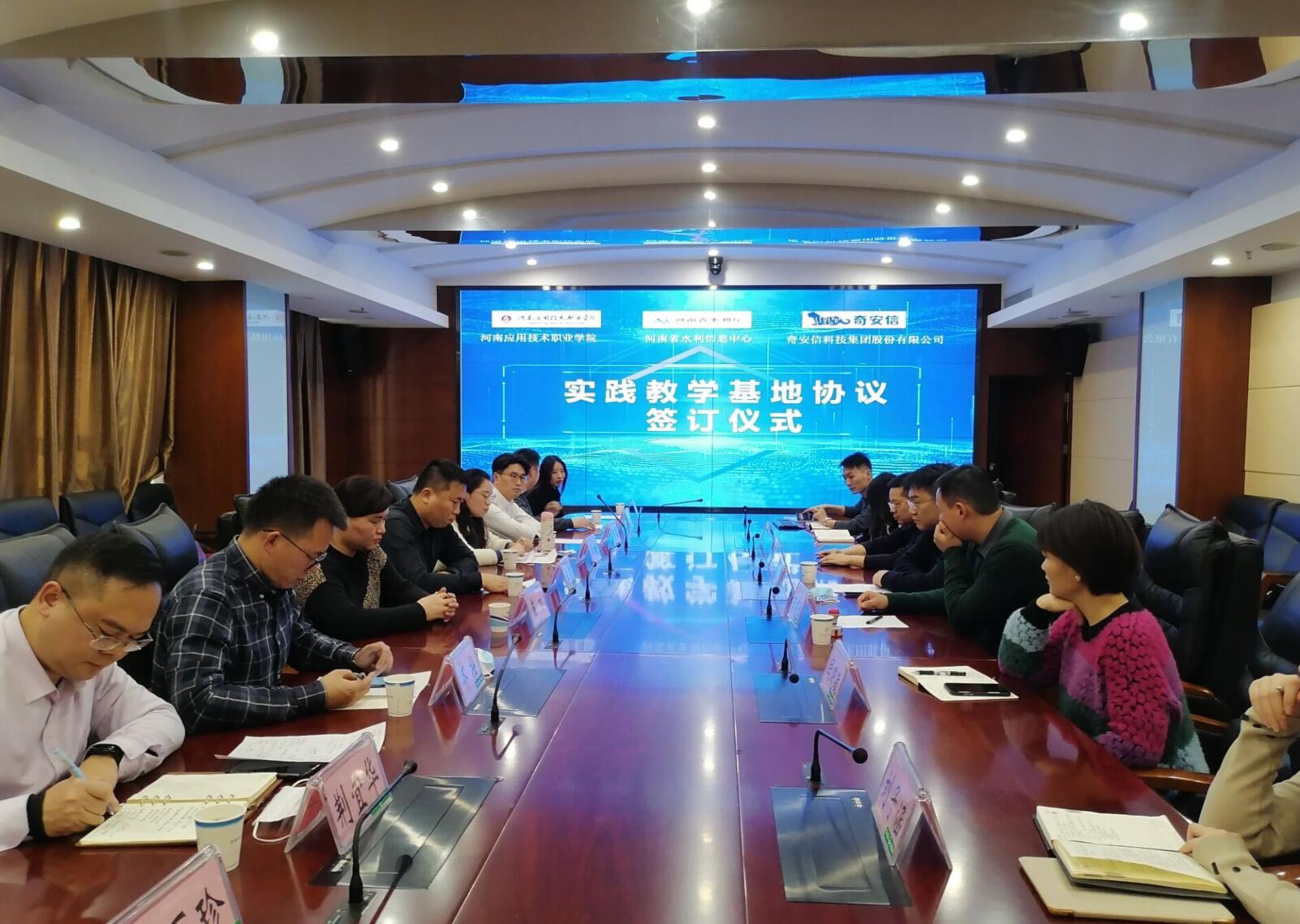 仪式上,信息工程公司与河南省水利厅信息中心签署实践教学基地协议;信息工程公司、河南省水利厅信息中心和奇安信科技集团共同签署校、政、企跨界融合创新服务平台合作协议。平台的建立,打通了跨界发展的渠道,构建了融合递进的模式。
