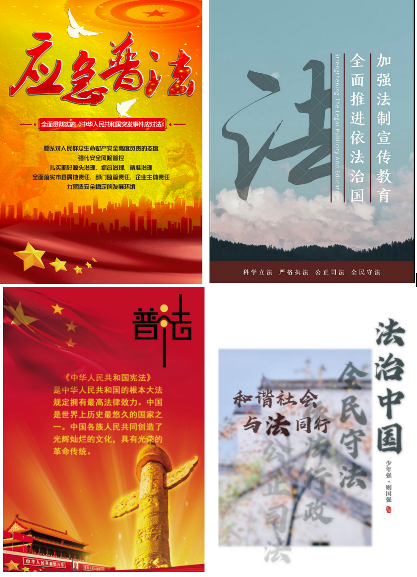 截止8月15日,公司师生组织制作应急普法知识平面海报共计50幅作品。作品内容贴近本次活动主题,作品风格多样,展示效果突出。