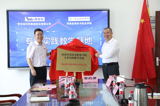 奇安信集团副总裁何新飞会上致词,公司的发展不仅需要创新研发型人才,更需要“懂技术能操作”的高素质“技术技能型人才”。战略合作的达成,对进一步加强公司人才队伍建设,汇聚科研和产业资源,实现校企双方合作共赢、共谋发展具有深远意义。他指出希望通过校企深度协作,双方在共建教师驻企工作站、专业实践教学基地、专业技术协同服务实践中心等多角度实现人才培养供需的无缝对接。努力将网络空间安全产业公司打造成全国高职院校校企合作的新示范,为中原地区经济发展做出应有贡献。