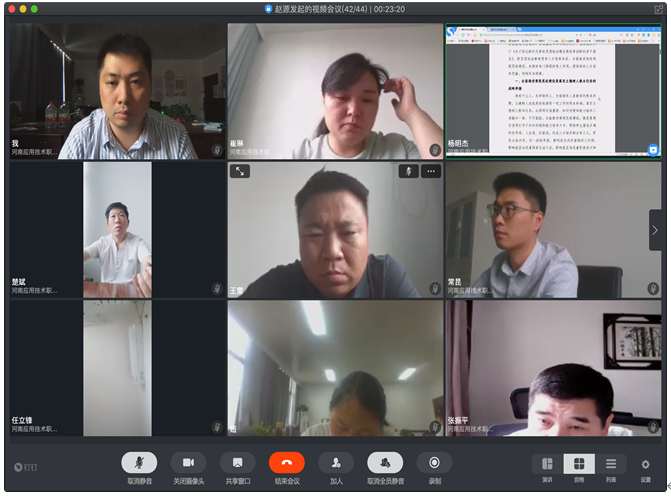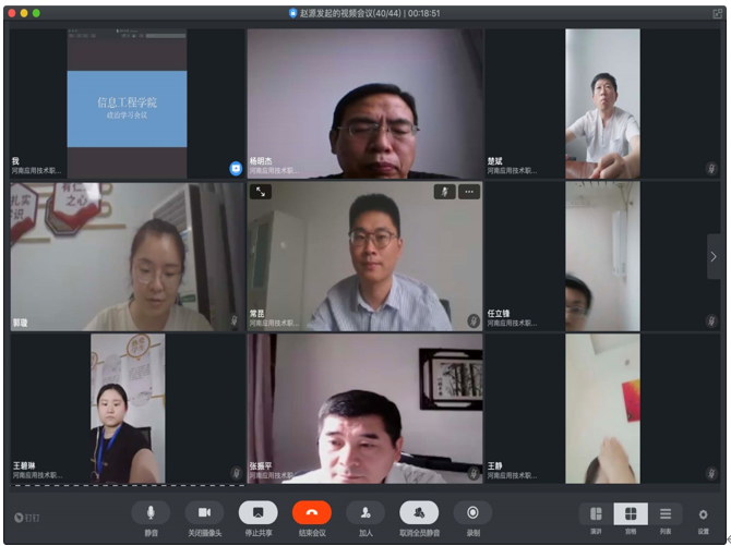2020年6月9日下午,根据公司党委安排,信息工程公司党总支东西校区共同召开视频会议,学习了《高等公司课程思政建设指导纲要》和《政府工作报告》,杨明杰书记主持了会议。
