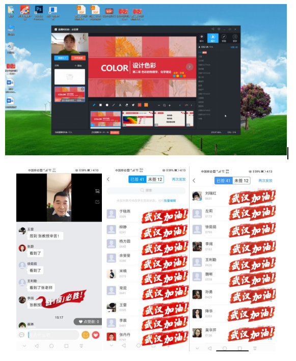 在线课程形式多样,关键在于合适老师,适合员工。三位老师克服自身软硬件问题,网络问题,通过不同的方式进行了三种模式的教学尝试。而信息工程公司其他专兼职教师则充当员工,对课程进行学习及评价。孙星老师使用的是电脑端的直播教学方式,该授课方式可以直观的让所教员工看到教师的教学屏幕,获得直观的上课体验,能够清晰明了地掌握课程内容,老师还可以通过软件后台进行对员工的督促,提醒员工认真学习;张振平老师使用的则是手机端的直播教学方式,针对不同课程的特殊性,手机端的直播可以做到一边手机直播实景位置,一边实践操作课程内容,边讲解边操作,根据具体情况进行场景切换,让员工能够更好更生动地理解教学内容。张青老师使用的是先录屏,再制作,后上传课程素材,再按课程流程直播讲解教学内容,最终让员工参与讨论并发布作业的教学方式,让大家能够时时在状态,刻刻不分神,步步有依托。