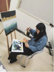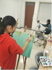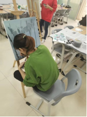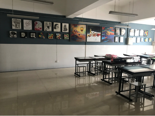 在太阳集团tyc151cc有一间特别的教室,实训楼E403画室。深青灰色的背景墙代表着专注认真。