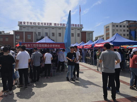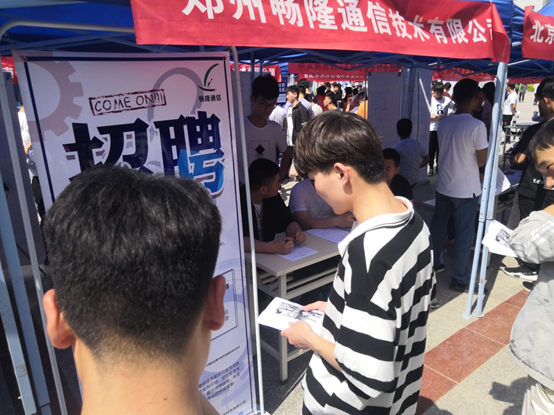 2019年5月21日下午,顶着炎炎烈日,信息工程公司企业招聘会在公司北广场举行。参会的企业有二十多家,其中招收计算机网络专业的企业主要有北京育源通信科技有限公司、郑州畅隆通信技术有限公司、河南八六三软件股份有限公司、郑州展云网络科技有限公司、河南华创教育科技有限公司、河南奇酷信息网络有限公司等近30家企业,现场场面十分热烈,2017级的同学们争先恐后地咨询并与企业初步签约。
