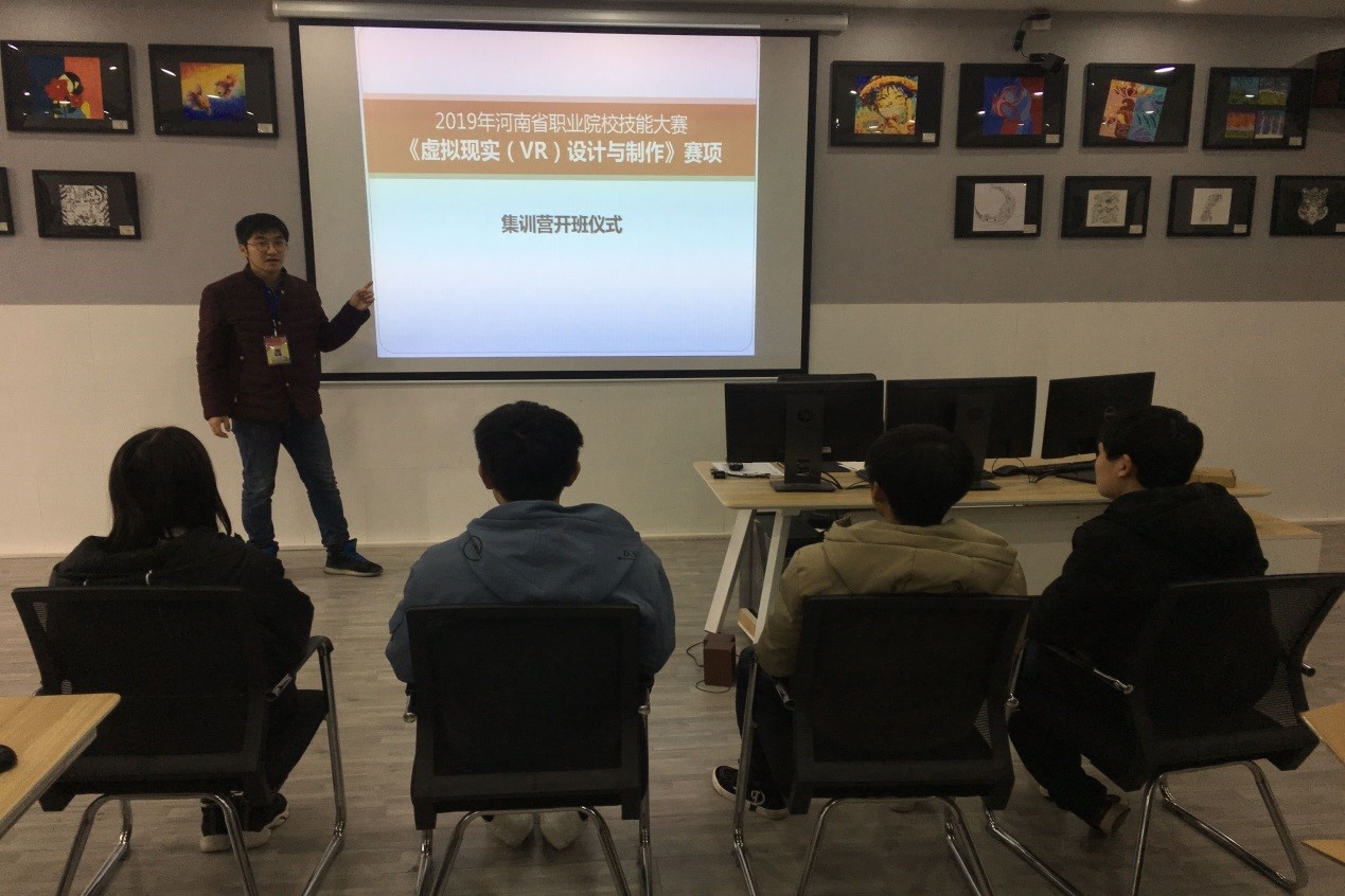 2019年河南省职业院校技能大赛《虚拟现实(VR)设计与制作》赛项冲刺集训营开班仪式于2019年2月27日在E414顺利举行。