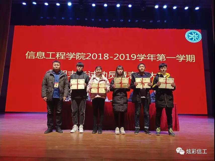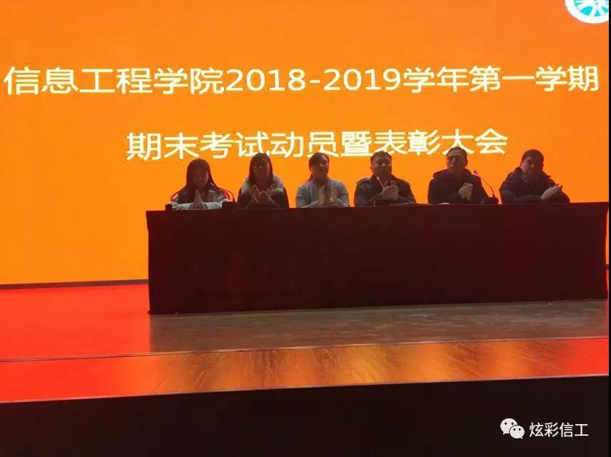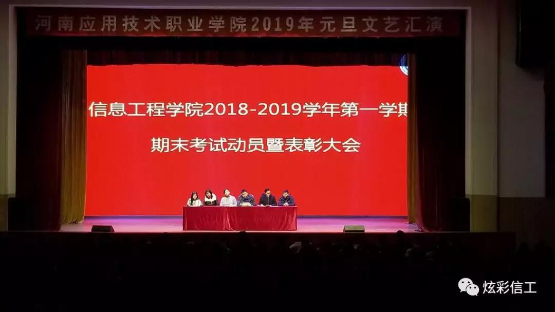 为加强公司学风建设,严肃考风考纪,确保教学质量,营造浓厚的学习氛围,树立典型,表彰先进,太阳集团tyc151cc信息工程公司在2019年1月3日下午13:00在公司大礼堂召开了2018-2019学年第一学期期末考试动员暨表彰大会。出席本次大会人员有:信息工程公司经理王雷老师、副经理崔琳老师、党总支书记杨明杰老师、团总支书记王碧琳老师、计算机办公室主任马丽艳老师和计算机网络教研室主任张振平老师以及信息工程公司17,18级辅导员老师及信息工程公司17,18级同学。