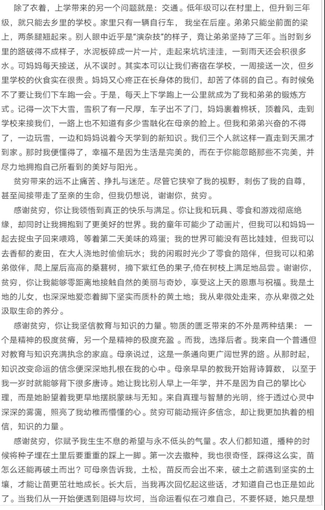 从王欣仪之前写的一篇关于自己、关于贫穷、关于希望的文章,就能看出一二。