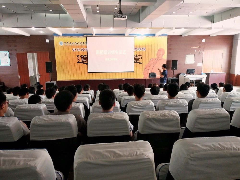 2018年5月29日,信息工程公司16级艺术专业员工在B楼学术报告厅进行了一场别开生面的岗前培训结业仪式。