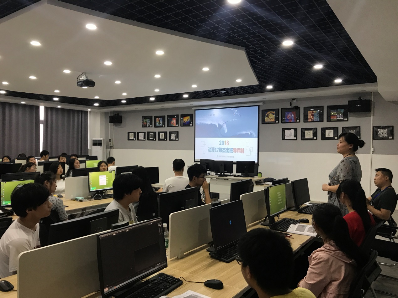 2018年5月16日下午6点,17级动漫制作技术专业杰出人才班在E414召开“导师制”会议。信息工程公司经理王雷老师、副经理崔琳老师和全体艺术教研室专业教师参加会议。