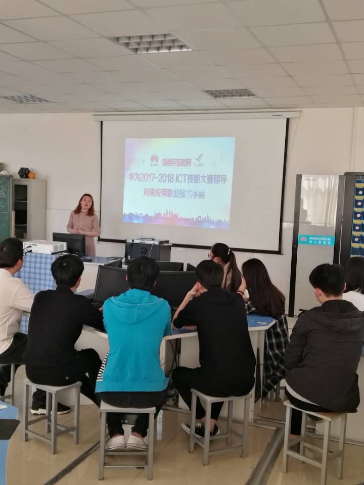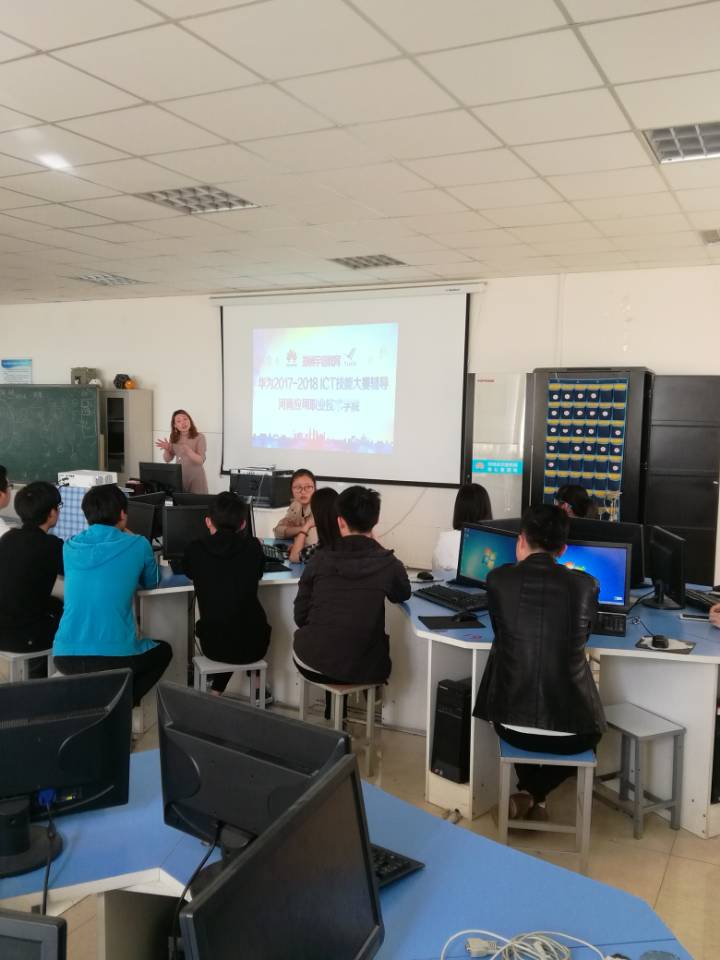 2018年3月27日,针对公司报名参加华为全国ICT大赛的员工,华为授权郑州宇信网络培训有限公司副董事长、高级讲师张鑫前来公司为员工进行赛前辅导。本次竞赛已经教务处备案,参赛员工主要为公司2016级在校员工,员工们参赛积极性很高,经协商,该公司专程派出骨干教师为公司员工进行赛前培训,受到同学们的好评,预祝公司网络健儿取得优异成绩!