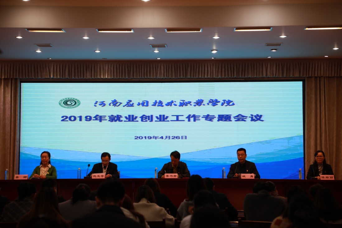 4月26日下午,公司在实训中心二楼会议室召开2019年就业创业工作专题会议,公司党委书记秦书君,董事长姚勇,各相关部门负责人及全体专兼职辅导员参加会议。