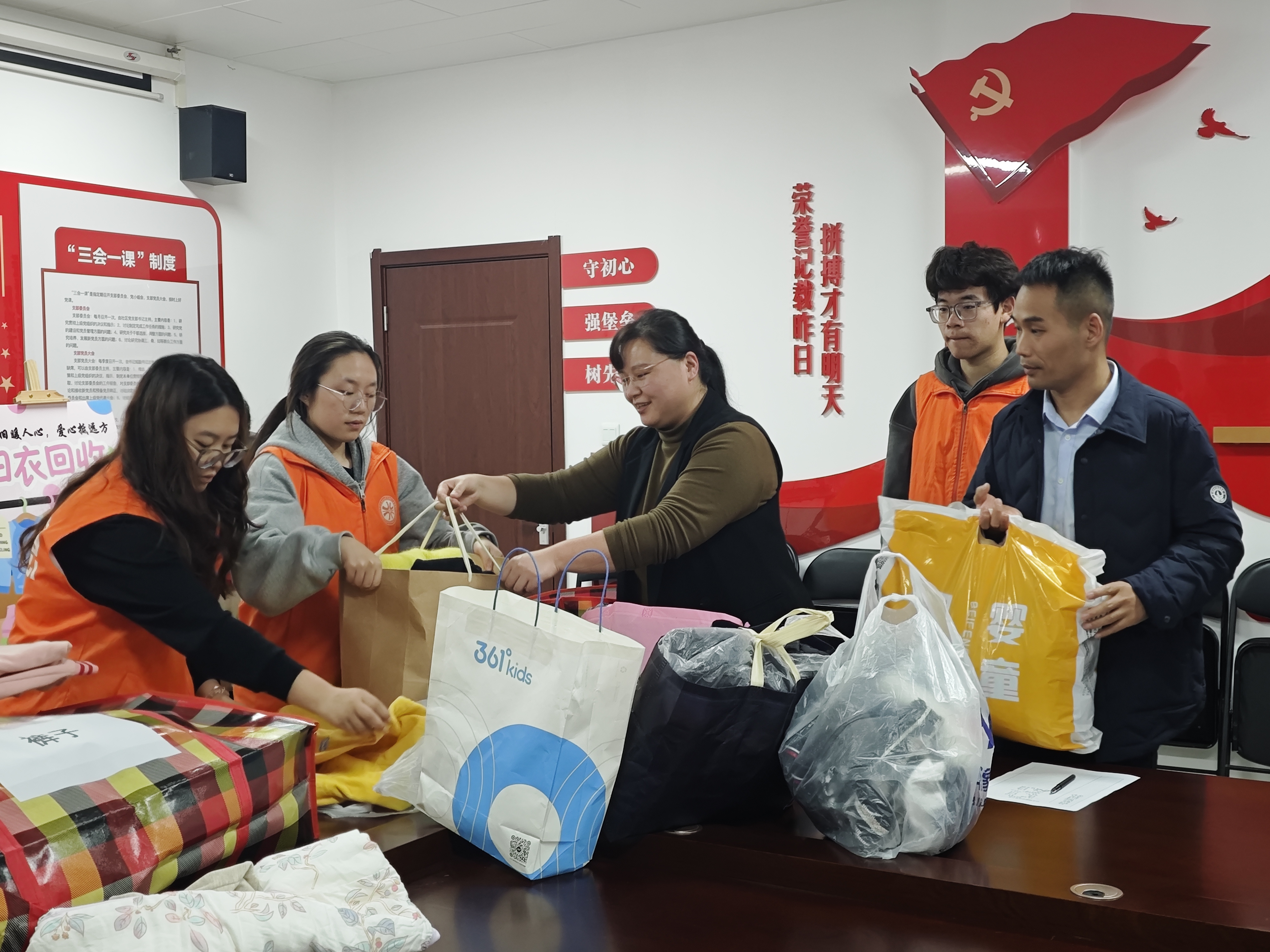 活动倡议一经发出,便得到了全体师生的积极响应。党员同志们率先垂范,纷纷从家中整理出干净、整洁、完好的羽绒服、棉衣、毛衣、保暖裤等过冬衣物。有的同志细心地将衣物清洗晾晒,折叠得整整齐齐;有的同志特意购买了崭新的儿童棉帽、手套和围巾;有的同志不仅在衣物内附上写满鼓励话语的暖心卡片,更主动承担起物资分类、打包整理的工作。活动现场,一件件承载着关爱与温度的衣物逐渐堆积成“小山”,仿佛一座用爱心垒砌的堡垒,准备抵御远方的严寒。