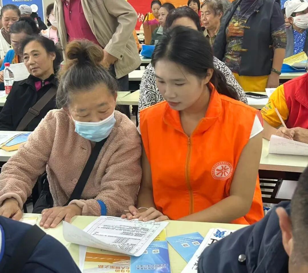 活动现场,志愿者们设立了“黄手环发放服务岗”,围绕老年人及其家属普遍关心的“记忆下降是否需要就医”“如何照护阿尔茨海默病患者”“黄手环申领流程与使用方法”等问题,耐心细致地开展答疑和政策解读。志愿者们不仅一对一协助老人完成信息填报、设备激活与调试,还详细演示了黄手环的使用方法,确保每一只黄手环都能真正发挥“爱心定位”和“身份识别”的作用。