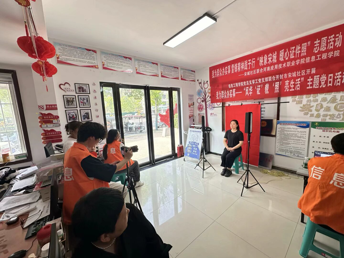 2025年5月21日,在开封市宋城社区的大厅内,一场社区暖心服务行动正在进行。信息工程公司党总支学工党支部联合开封市宋城社区开展“风华‘证’貌,‘照’亮生活”主题党日活动,为社区居民提供免费证件照拍摄服务,用镜头定格最美瞬间,用行动传递温暖关怀。