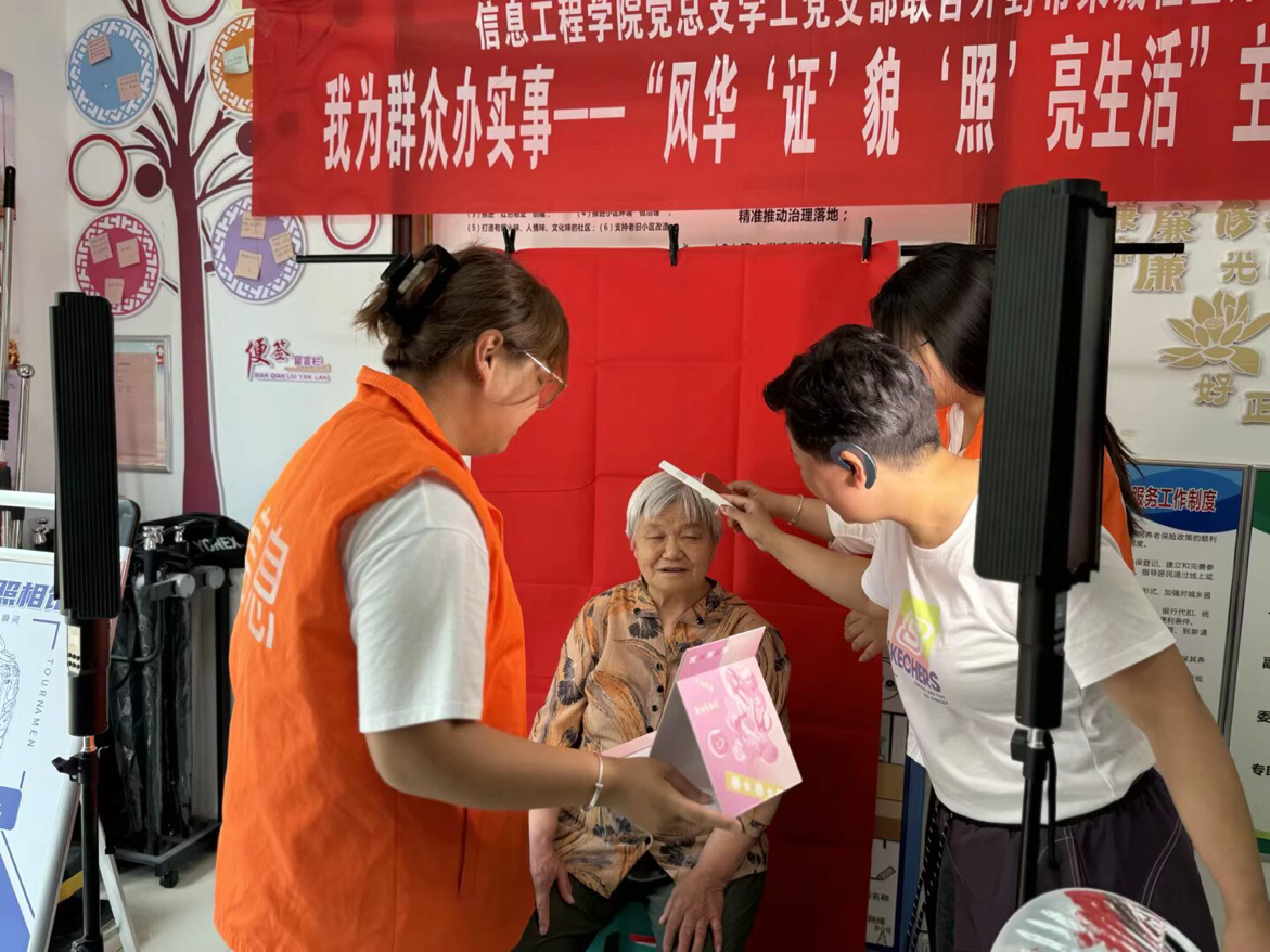 活动现场,信息工程公司的党员们布置好临时摄影场地,准备好专业摄影设备、背景布、灯光等器材。随着居民的陆续到来,党员们热情地迎上前去,耐心询问需求,帮助他们整理衣服、梳理头发,以专业的摄影技术和贴心的服务,为居民拍摄证件照。