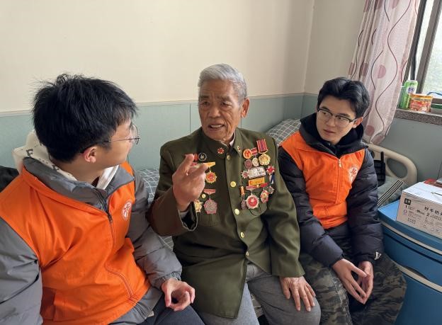 以身许国,血与火铸就光与热。老战士们热情接待了前来探望的师生。他们家中摆放的各种荣誉奖牌和奖章,见证了他们曾经光辉的军旅生涯和抗美援朝的英勇事迹,也将师生们的思绪带到了那段烽火连天的岁月。