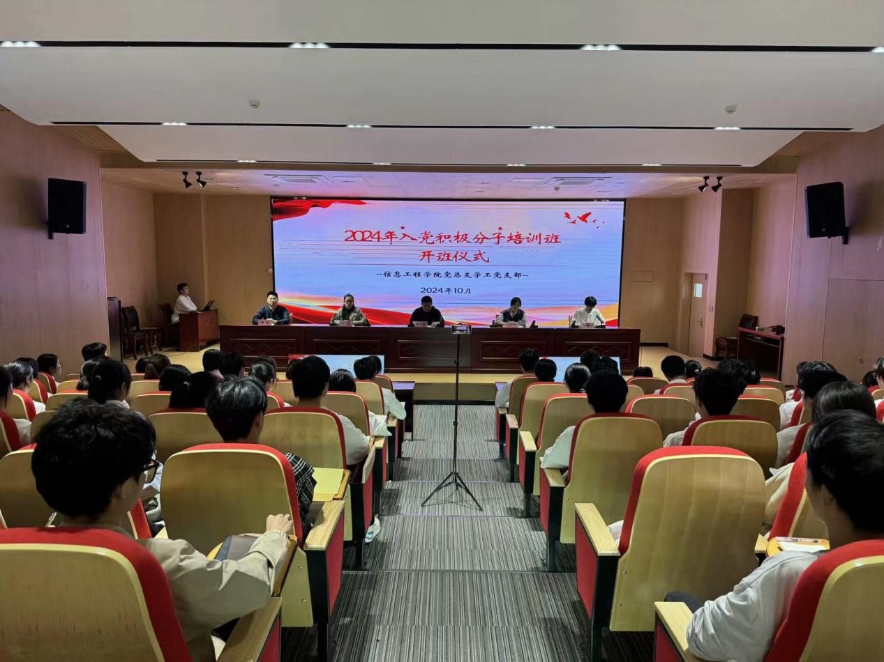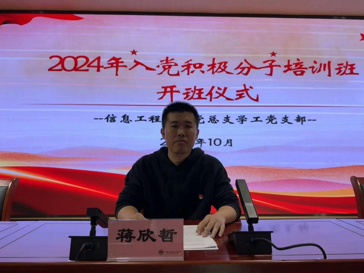 为切实加强对入党积极分子的培养教育,把好党员发展“入口关”和“质量关”,信息工程公司党总支于2024年10月30日在开封校区北院D102举办2024年下半年入党积极分子培训班开班仪式。共96名入党积极分子参加培训。信息工程公司党总支副书记、学工党支部书记蒋欣哲、学工党支部组织委员、团总支书记冷月、学工党支部宣传(统战)委员杨方圆、学工办主任常昆参加仪式,仪式由信息工程公司员工会主席郑志宇主持。