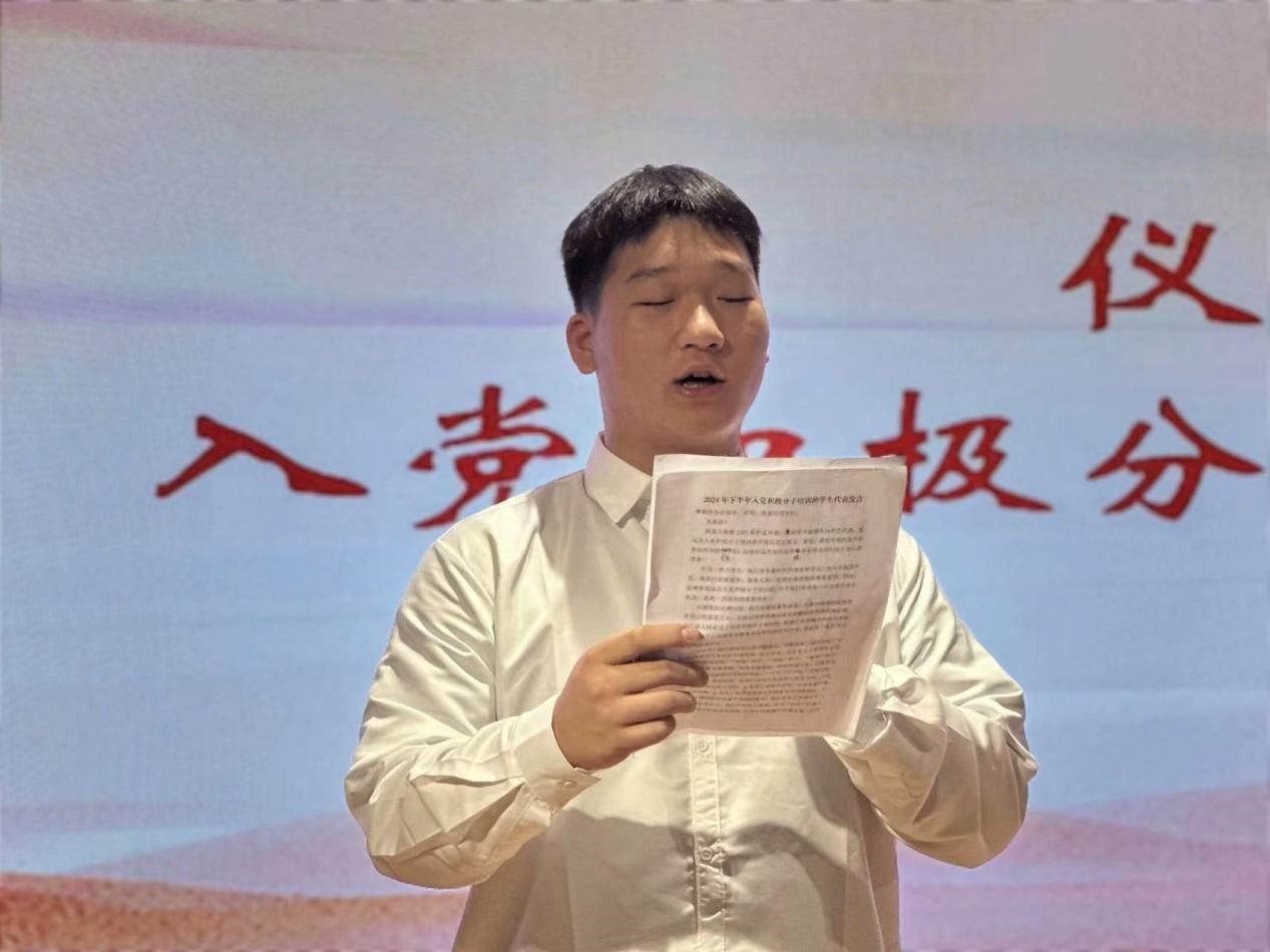 仪式上,大数据2301班孟庆旋代表入党积极分子发言,他表示,作为一名当代青年,一名积极向党组织靠拢的青年,我们应时刻牢记习近平总书记的殷切嘱托,坚定不移听党话,矢志不渝跟党走,立志做不负时代、不负韶华、不负党和人民重托的新时代好青年。并表态在参加培训班期间将始终严守培训班纪律,持续提升思想认识,做到勇担责任使命,以身边的优秀党员作为学习榜样,用共产党员的标准严格要求自己,争取早日入党。