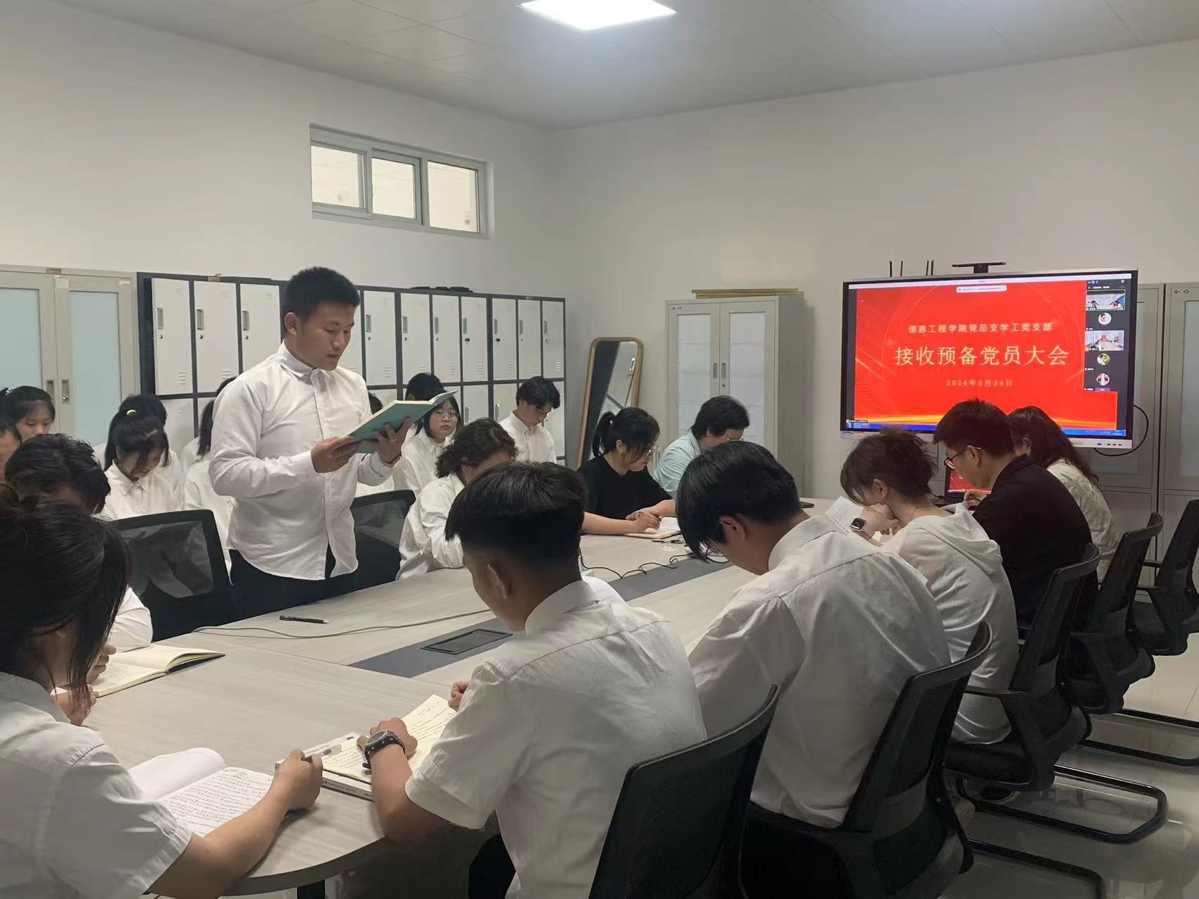 2024年5月24日,信息工程公司党总支学工党支部在郑州校区A514、开封校区C314开展2024上半年预备党员接收大会,本次大会旨在讨论并决定接收新的一批发展对象成为中共预备党员,为公司党组织注入新的活力和力量。会议由信息工程公司党总支学工党支部书记蒋欣哲主持,党支部全体党员参会。