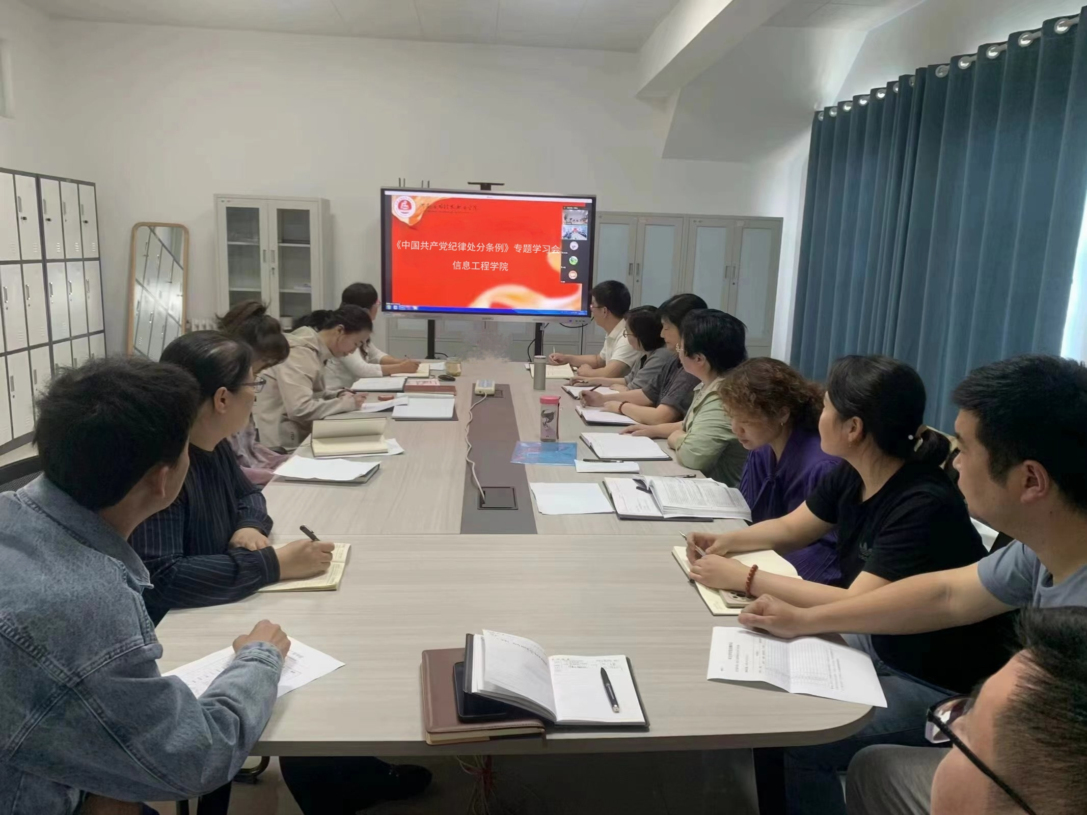 为进一步推动全公司党员深入学习贯彻新修订《中国共产党纪律处分条例》(以下称《条例》),增强广大党员同志们纪律意识,引领党员同志明法纪、守底线,4月29日,信息工程公司教工党支部、学工党支部分别在郑州校区A514、开封校区C314开展《中国共产党纪律处分条例》专题学习会,教工党支部由支部书记王雷主持、学工党支部由支部书记蒋欣哲主持,全体党员参会。