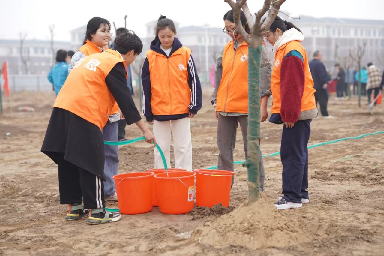 植树现场,师生们纷纷拿起工具,投入到植树活动中。挥锹铲土、扶苗填坑、围堰浇灌……每一个环节都凝聚着大家的汗水和希望。现场热情高涨,大家有序组队、分工协作、默契配合,一丝不苟地完成每一道工序,共同完成了一棵棵树苗的种植。热火朝天的场面、干劲十足的身影,成为春日里一道靓丽的风景线。通过亲自动手,亲身参与,师生们更深刻地感受到了绿色生活的重要性。
