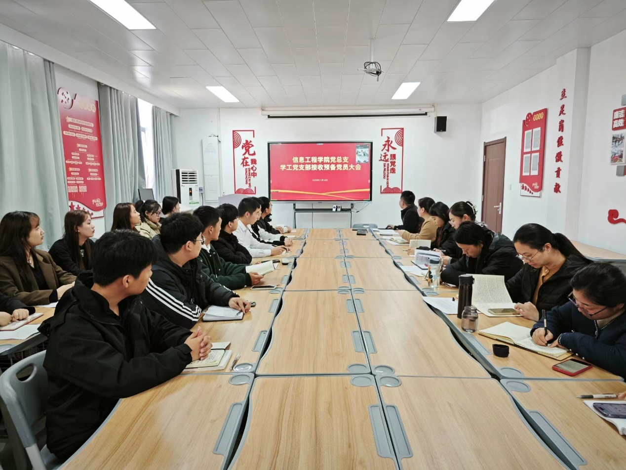 2023年11月16日,信息工程公司党总支学工党支部开展接收预备党员会议,会议由信息工程公司党总支学工党支部书记蒋欣哲主持,全体党员参会。
