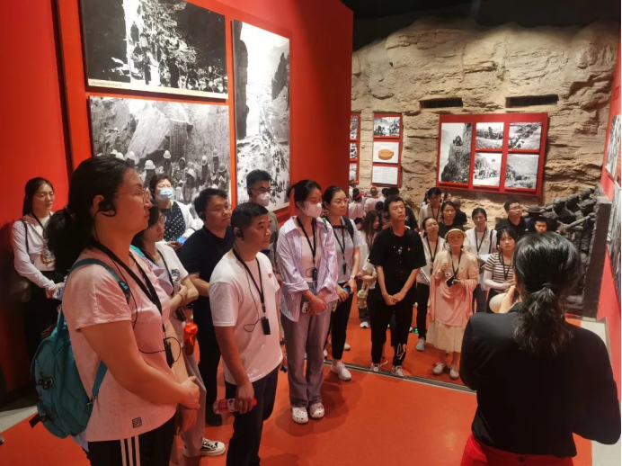 习近平总书记在河南安阳考察时曾指出,“红旗渠就是纪念碑,记载了林县人民不认命、不服输,敢于战天斗地的英雄气概”,红旗渠精神同延安精神是一脉相承的,是中华民族不可磨灭的历史记忆,永远震撼人心,“红旗渠精神永在”。总书记的指示言犹在耳,催人奋进。全体党员追随总书记足迹,参观了红旗渠纪念馆,在讲解员的带领下,大家重温了红旗渠修建过程的艰辛历程和可歌可泣的英雄故事。一幅幅泛黄的照片、一件件陈旧的工具、一个个感人的故事,让大家身临其境感受到林州人民建造人工天河时不畏艰险,顽强拼搏,仅靠一锤一铲削平1250座山头、凿通211个隧道、架设151个渡槽的恢弘场景。切身体会了“十万大军战太行”的困难和艰辛,更加深刻理解了“自力更生、艰苦创业、团结协作、无私奉献”的红旗渠精神的实质内涵和时代价值。