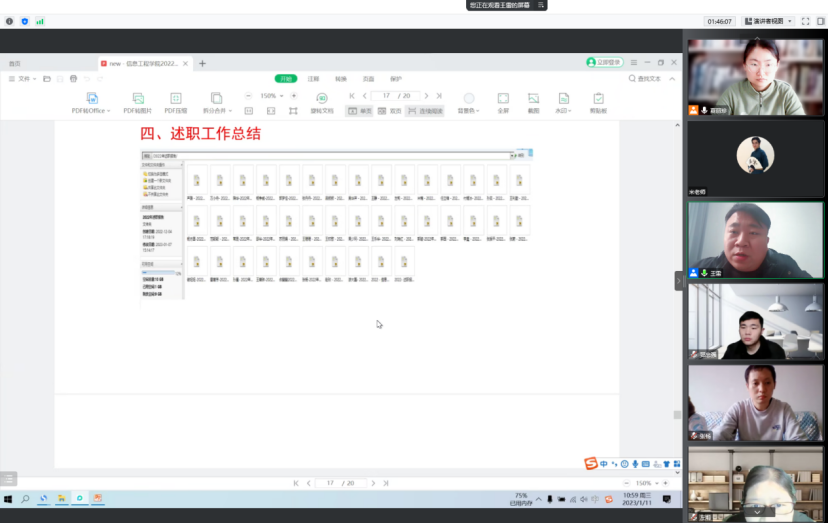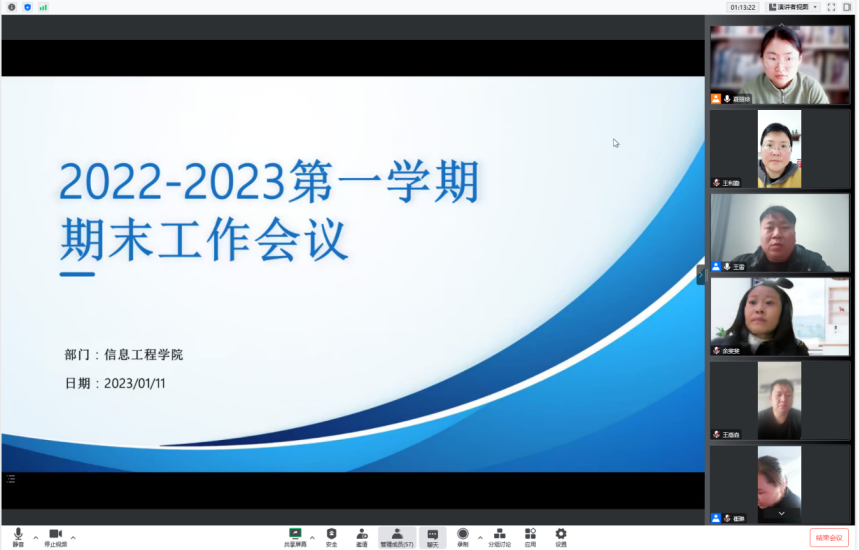 2023年1月11日上午9:30至11:30,信息工程公司通过腾讯会议召开了2022学年工作总结及新学年工作部署大会,会议由夏丽珍副经理主持,王雷经理和崔琳书记做整体工作部署,全体专兼职教师参会。