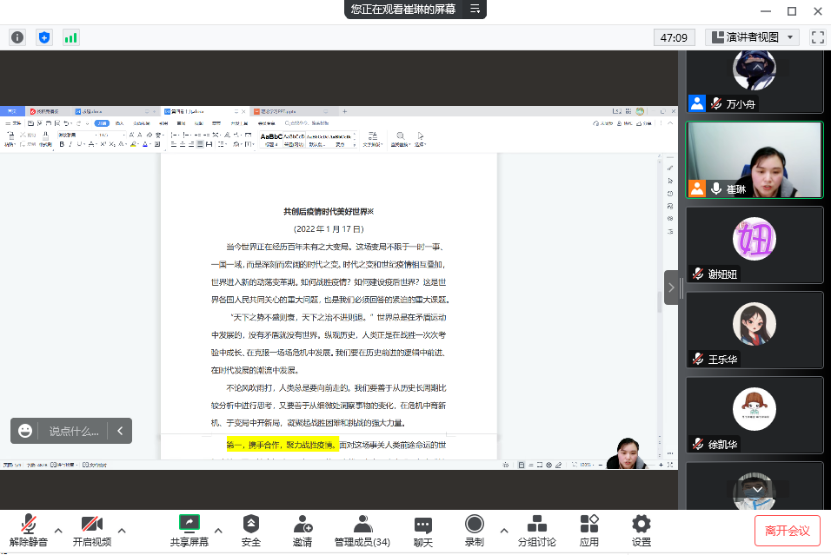 崔琳书记领学“共创后疫情时代美好世界”
